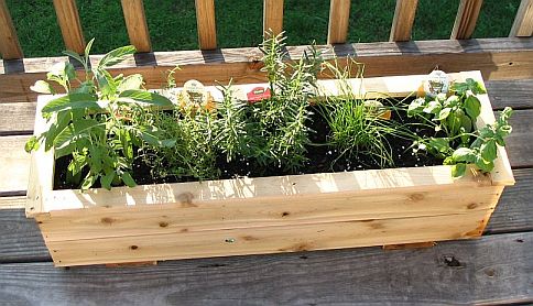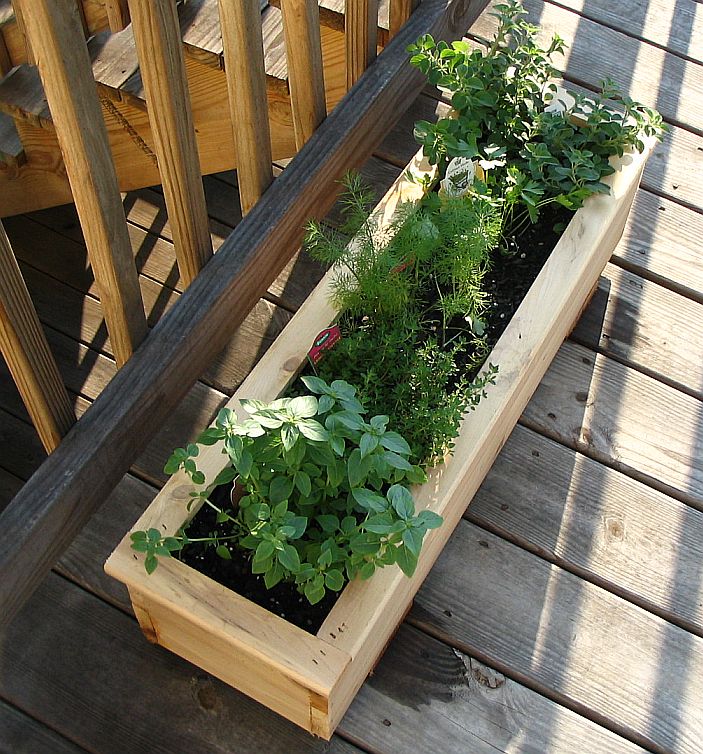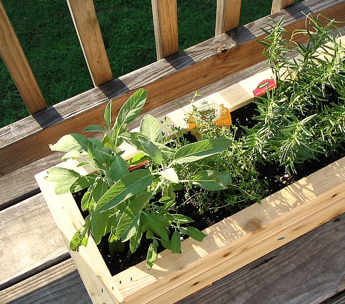 ![]() Cedar box #2 contains (left to right) Common Sage, Common Thyme, Rosemary, Chives, and Sweet Basil ![]() ![]() |