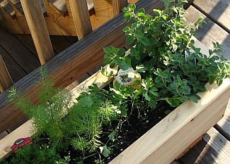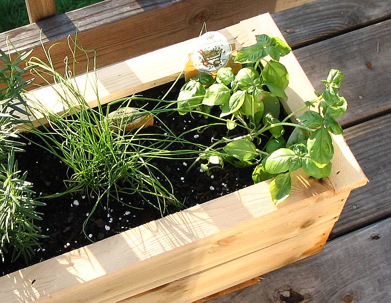 ![]() Cedar box #1 contains (left to right) Spicy Globe Basil, Lemon Thyme, Fernleaf Dill, Italian Parsley, and Greek Oregano ![]() Spicy Globe Basil and Lemon Thyme ![]() Fernleaf Dill, Italian Parsley, and Greek Oregano |