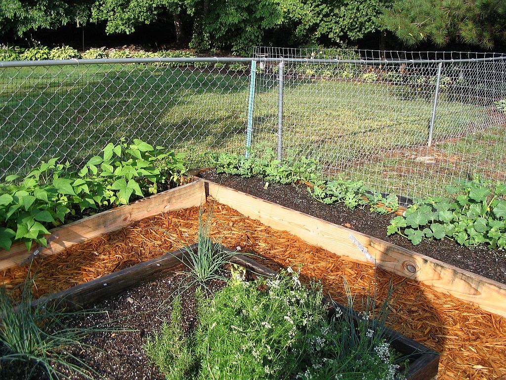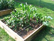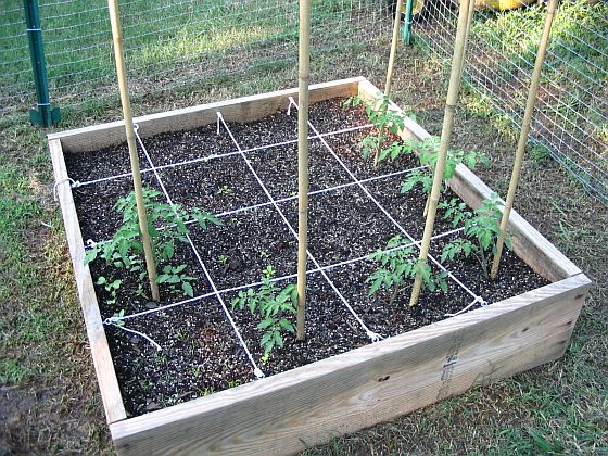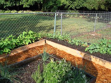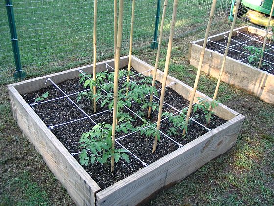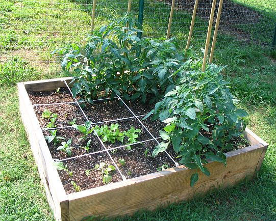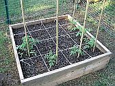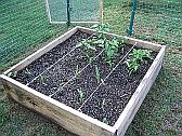 Vegetable Garden (as of June 2005) We're doing Square-Foot gardening this year. We've started with 3 - 4' X 4' bottomless boxes. We filled them each with a mix consisting of 1/3 peat moss, 1/3 coarse vermiculite, and 1/3 compost per Mel Bartholomew's instructions. |