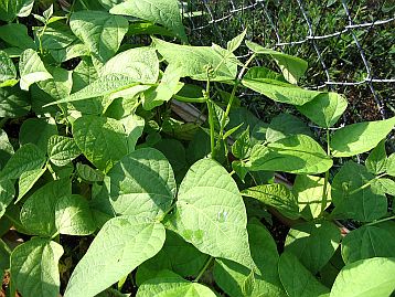 To the left of the watermelons are the beans. These are bush beans. To the left of them are peas. |