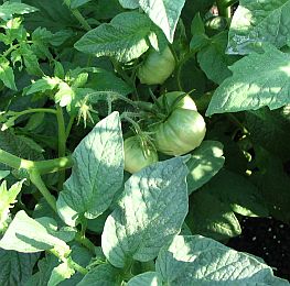 Finally, the tomatoes. We're growing Celebrity, Big Boy (or is it Better Boy?), Roma, and Brandywine (heirloom). They're in need of trellising at this point. A close-up... |